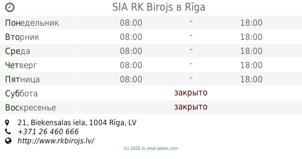 | Суббота | закрыто | |||||